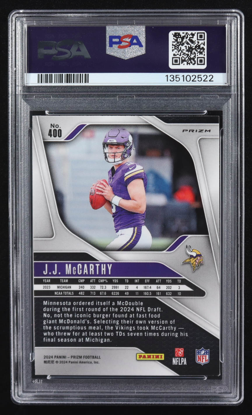 JJ McCarthy 2024 Panini Prizm Prizms Pink Wave #400 RC (PSA 9)