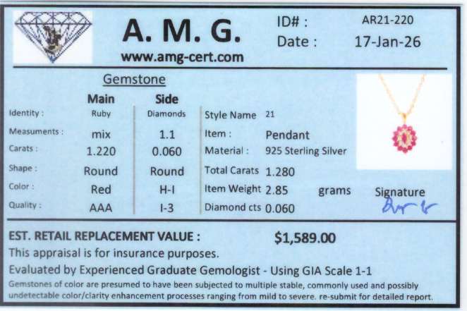 1.38 CTW Natural Ruby & Diamonds 18K Gold Plated Designer Necklace Size 18in | Estimated Value $1,589 (AMG)