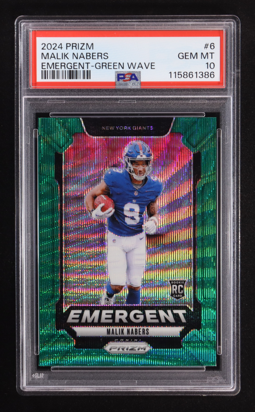 Malik Nabers 2024 Panini Emergent Green Wave #6 RC (PSA 10)