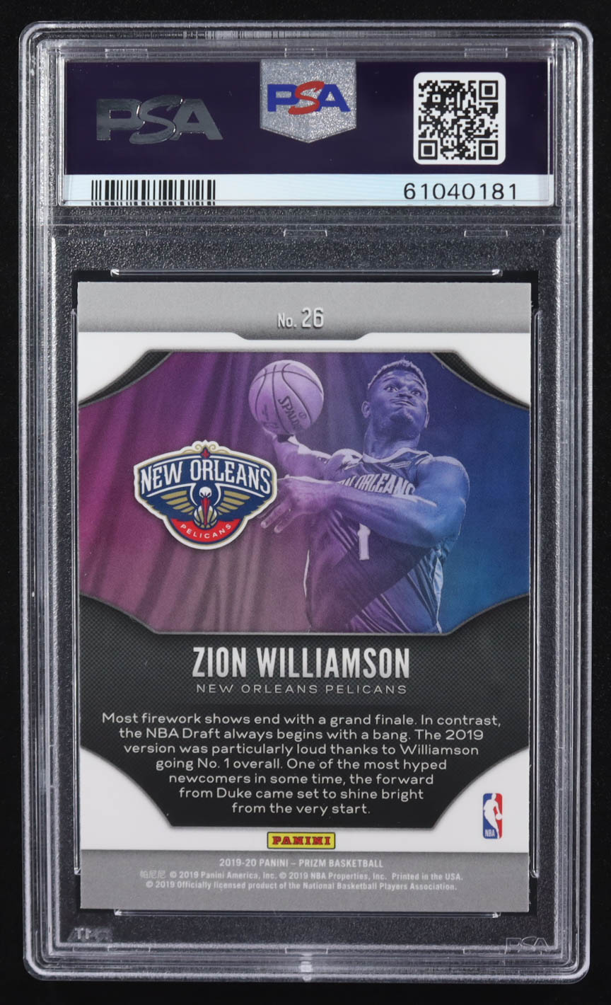 Zion Williamson 2019-20 Panini Prizm Fireworks #26 RC (PSA 10)