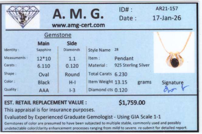 6.23 CTW Natural Black Sapphire & Diamond 18K Gold Plated Designer Necklace Size 16in | Estimated Value $1759 (AMG)