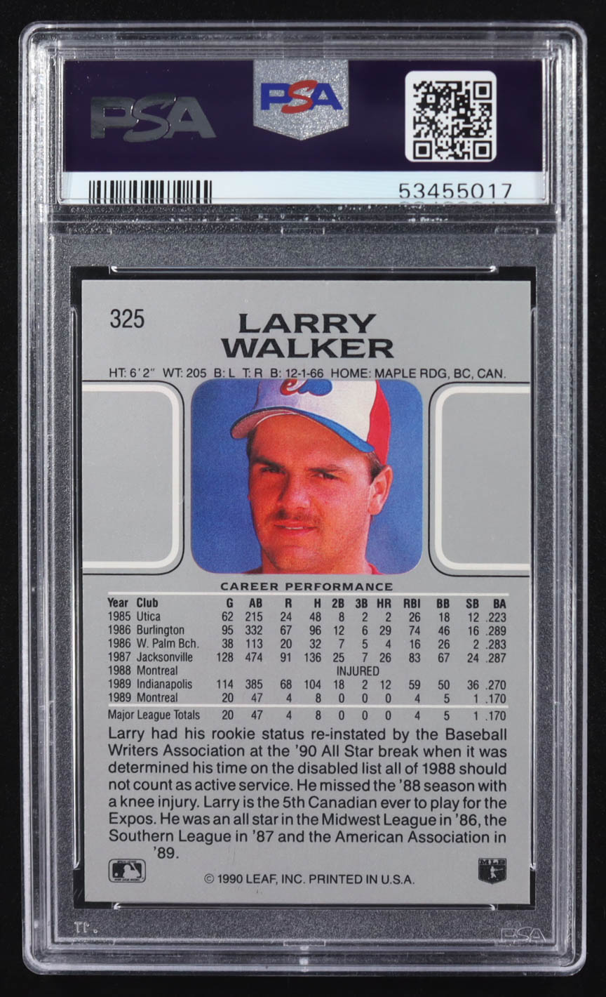 Larry Walker 1990 Leaf #325 RC (PSA 9)