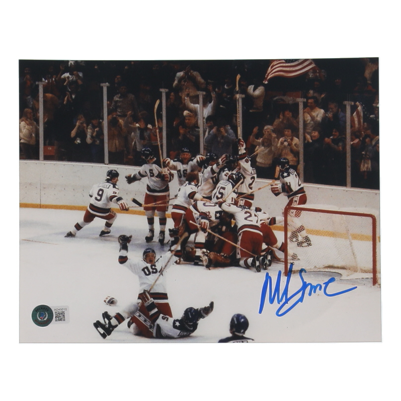 Photo measures approximately 8" x 10" in size. Hand-signed by Mike Eruzione.