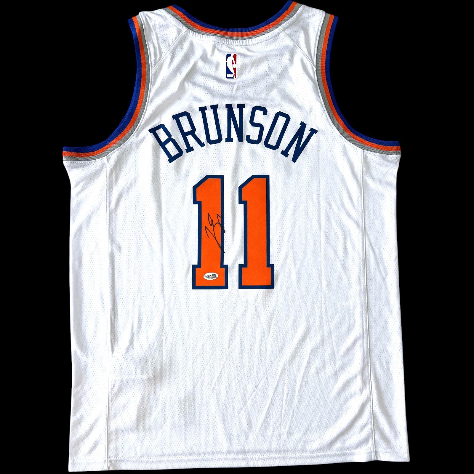 Nike jersey with everything pressed on, size 48. Hand-signed by Jalen Brunson (New York Knicks).