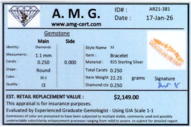 0.25 CTW Natural Diamonds 18K Gold Plated Designer Bracelet Size 8.4 Inches | Estimated Value $2,149 (AMG)