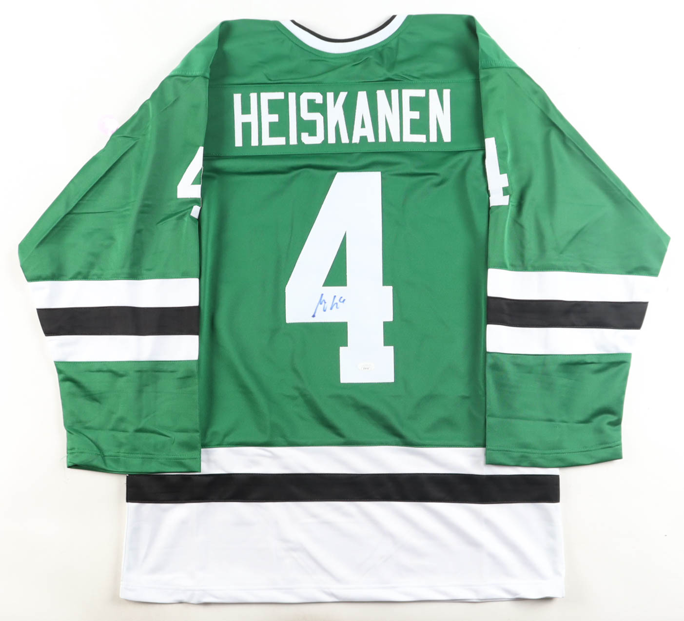 Custom jersey with everything sewn on, size XL. Hand-signed by Miro Heiskanen.