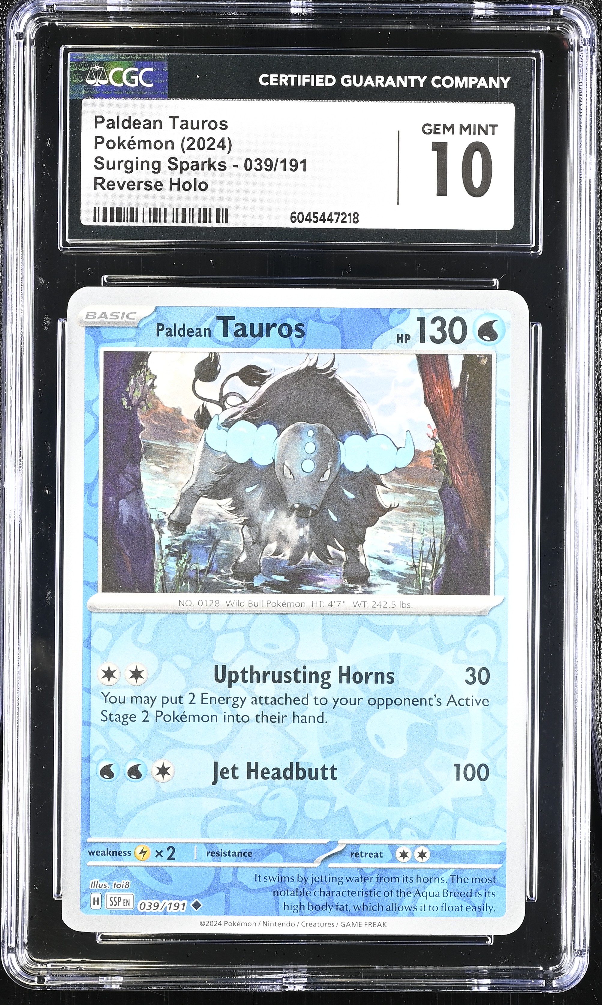 Paldean Tauros 2024 Pokemon Surging Sparks #039/191 (CGC 10)