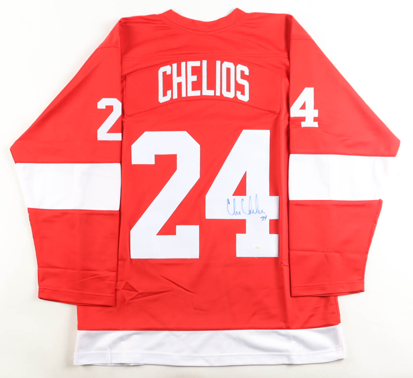 Custom jersey. Everything is sewn on, size XL. Hand-signed by Chris Chelios (HOF).