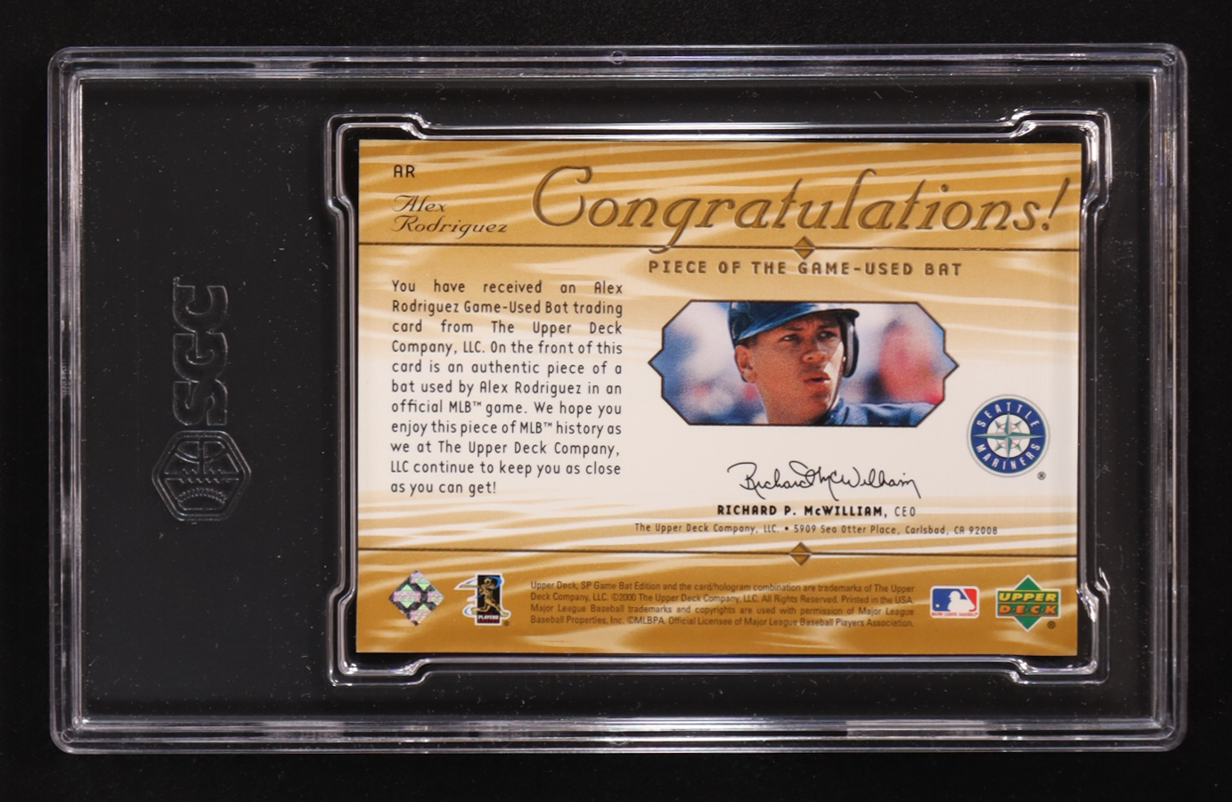 Alex Rodriguez 2001 Upper Deck SP Game Bat Edition Piece Of The Game #AR (SGC 9)