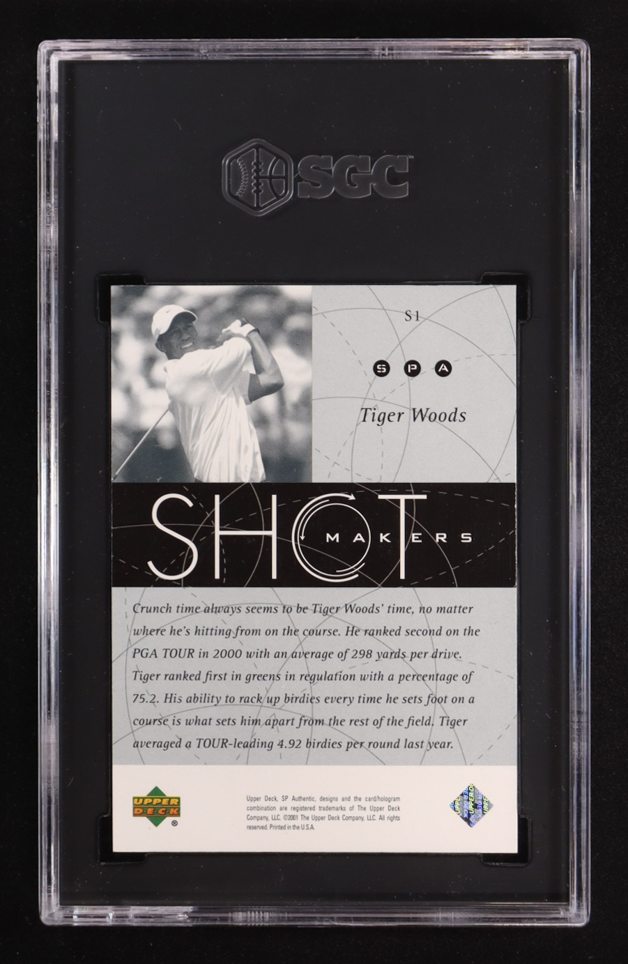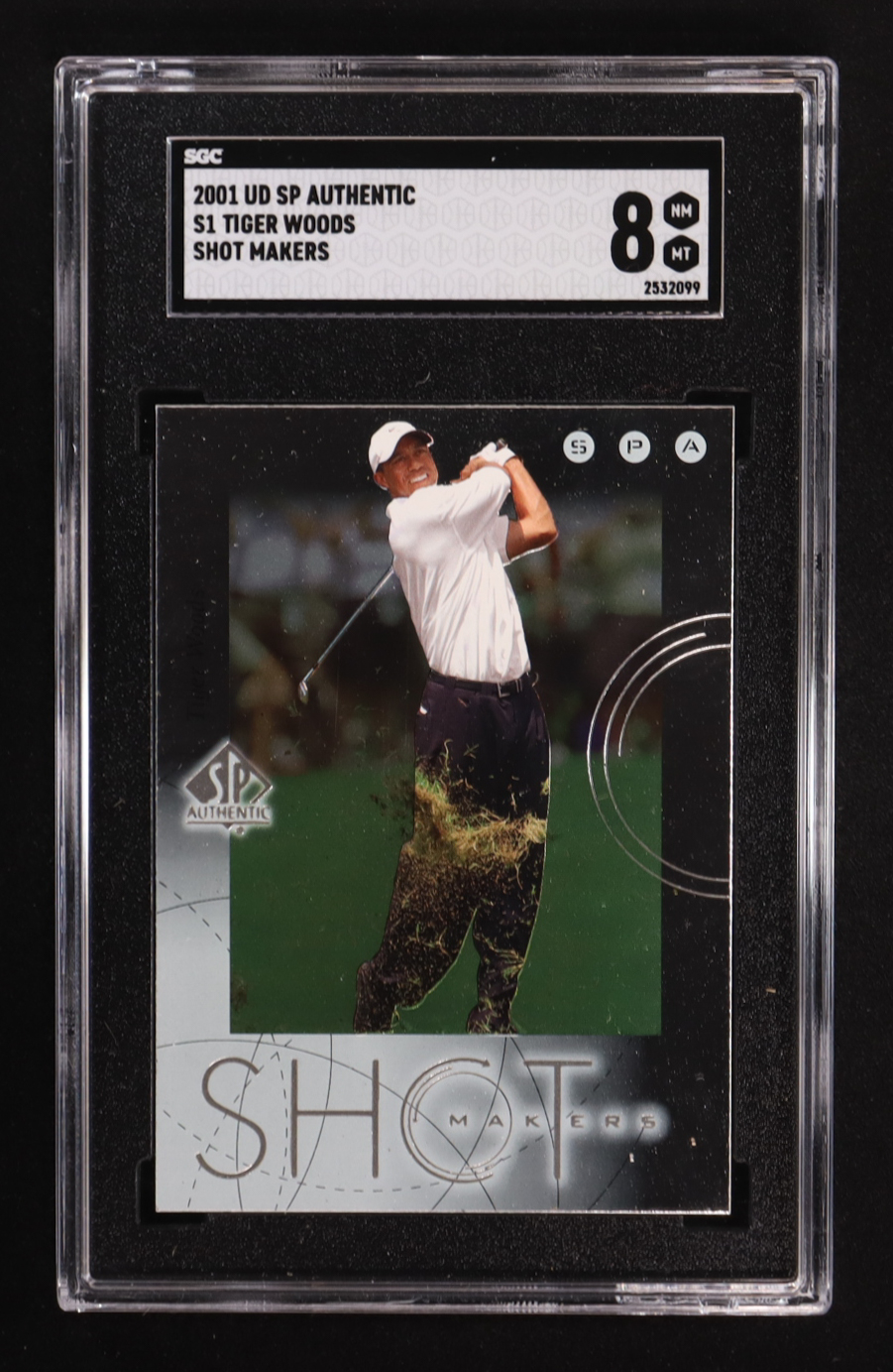 Tiger Woods 2001 Upper Deck SP Authentic Shot Makers #S1 RC (SGC 8)