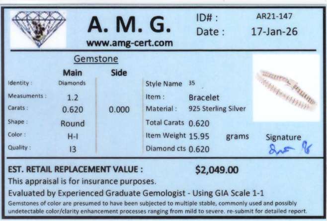 0.62 CTW Natural Diamonds Rhodium Plated Designer Bracelet Size 7.75 Inches | Estimated Value $2,049 (AMG)