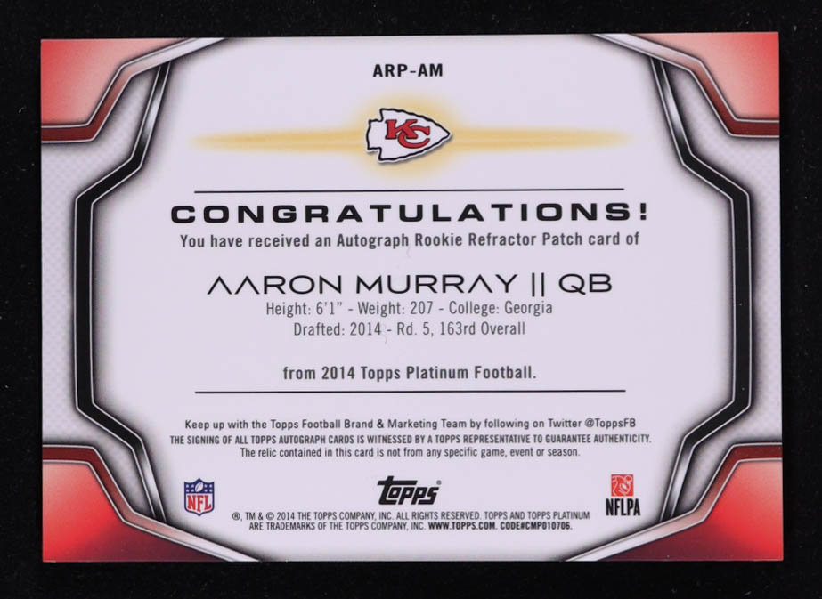 Aaron Murray 2014 Topps Platinum Rookie Patch Autographs Green Refractors #ARPAM #34/99 RC