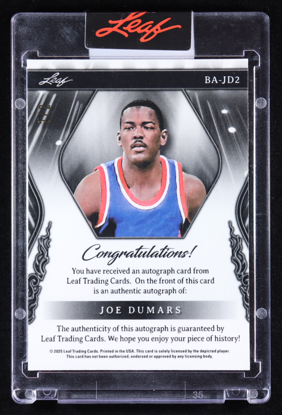 Joe Dumars 2025 Leaf Sports Heroes Autographs Crystal Silver #BAJD2 #2/2