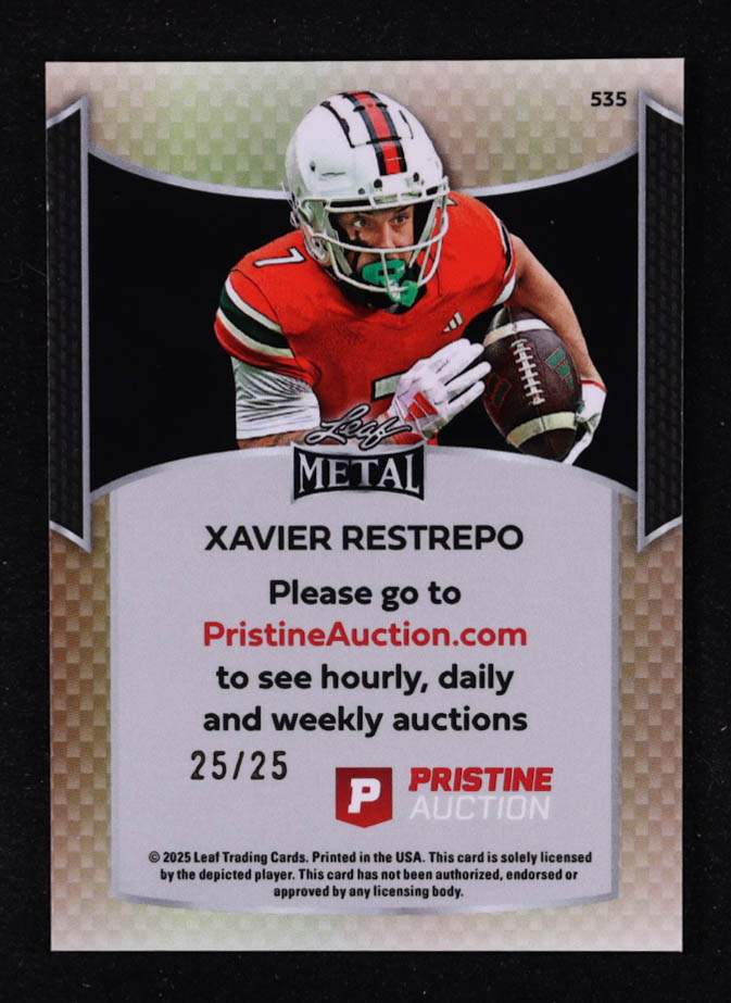 Xavier Restrepo 2025 Leaf Metal Pristine Auction Collection Prismatic Blue #535 #25/25 RC