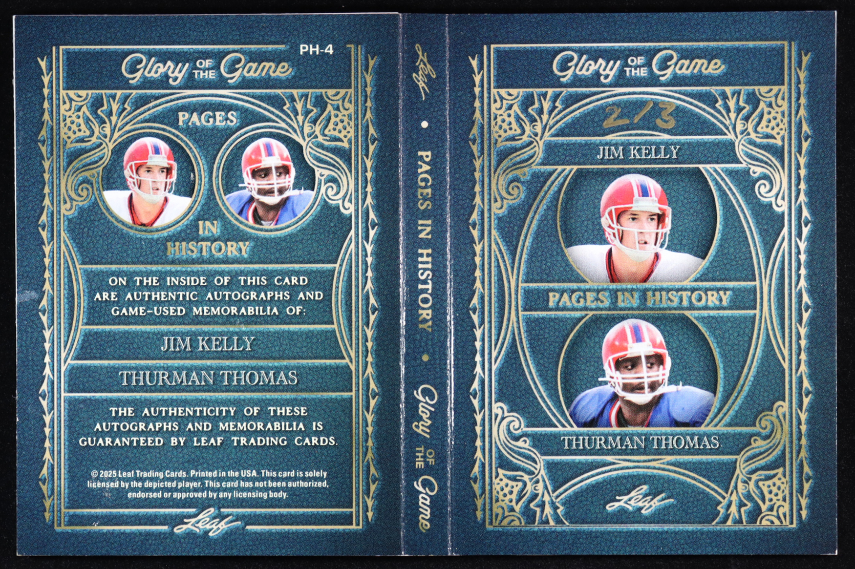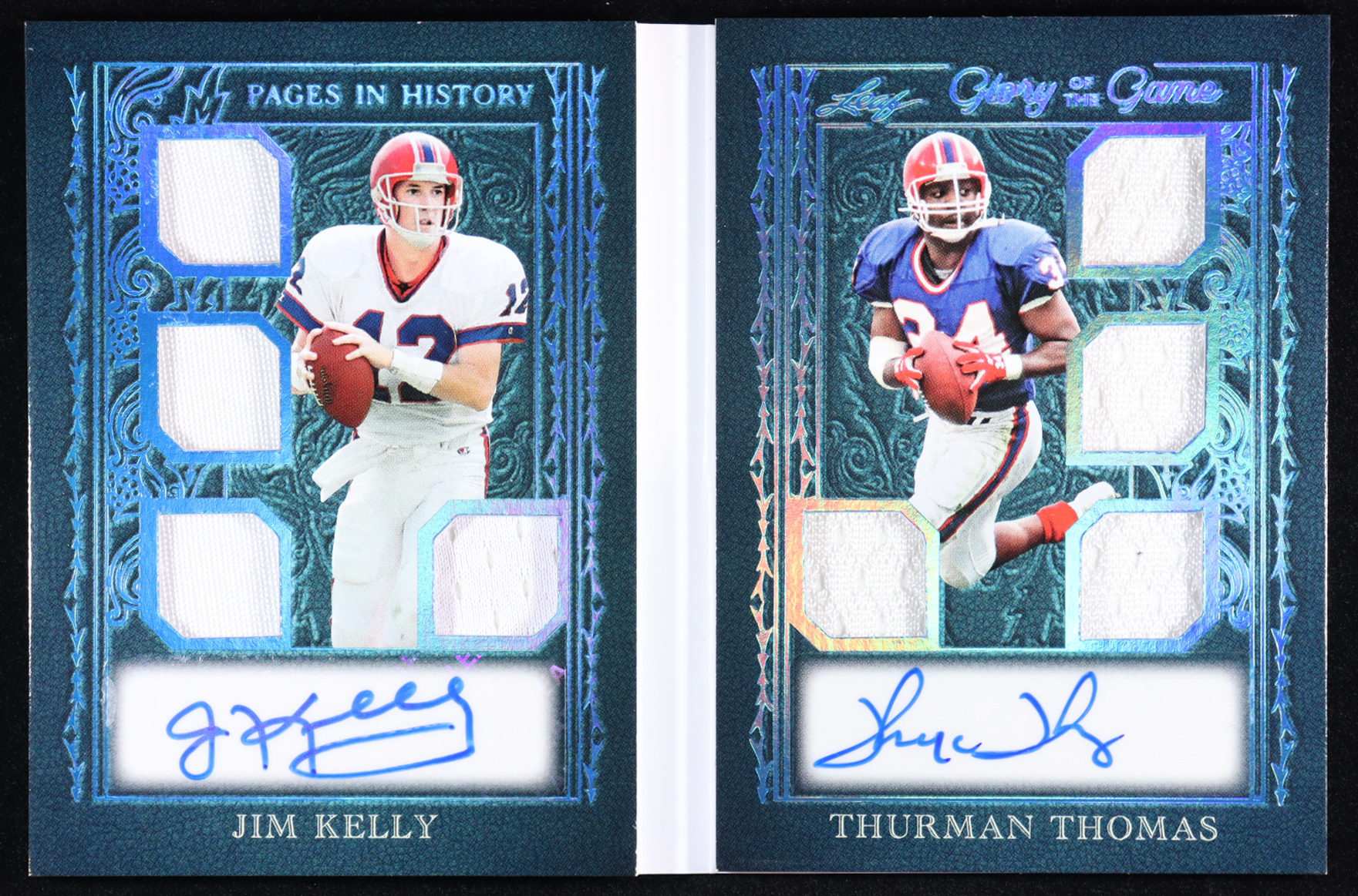 Jim Kelly / Thurman Thomas 2025 Leaf Glory of the Game Pages in History Patch Autographs Holo Platinum #PH4 #2/3
