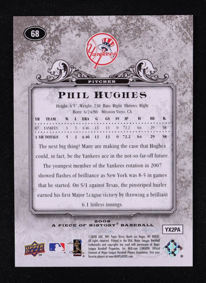 Phil Hughes Signed 2008 UD A Piece of History #68