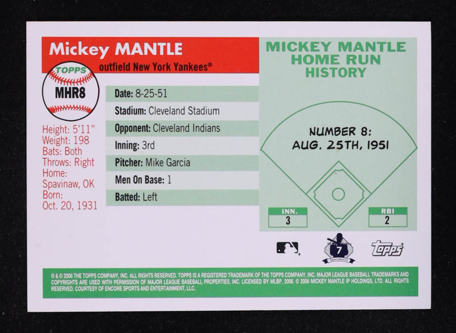 Mickey Mantle 2006 Topps Mantle Home Run History #8