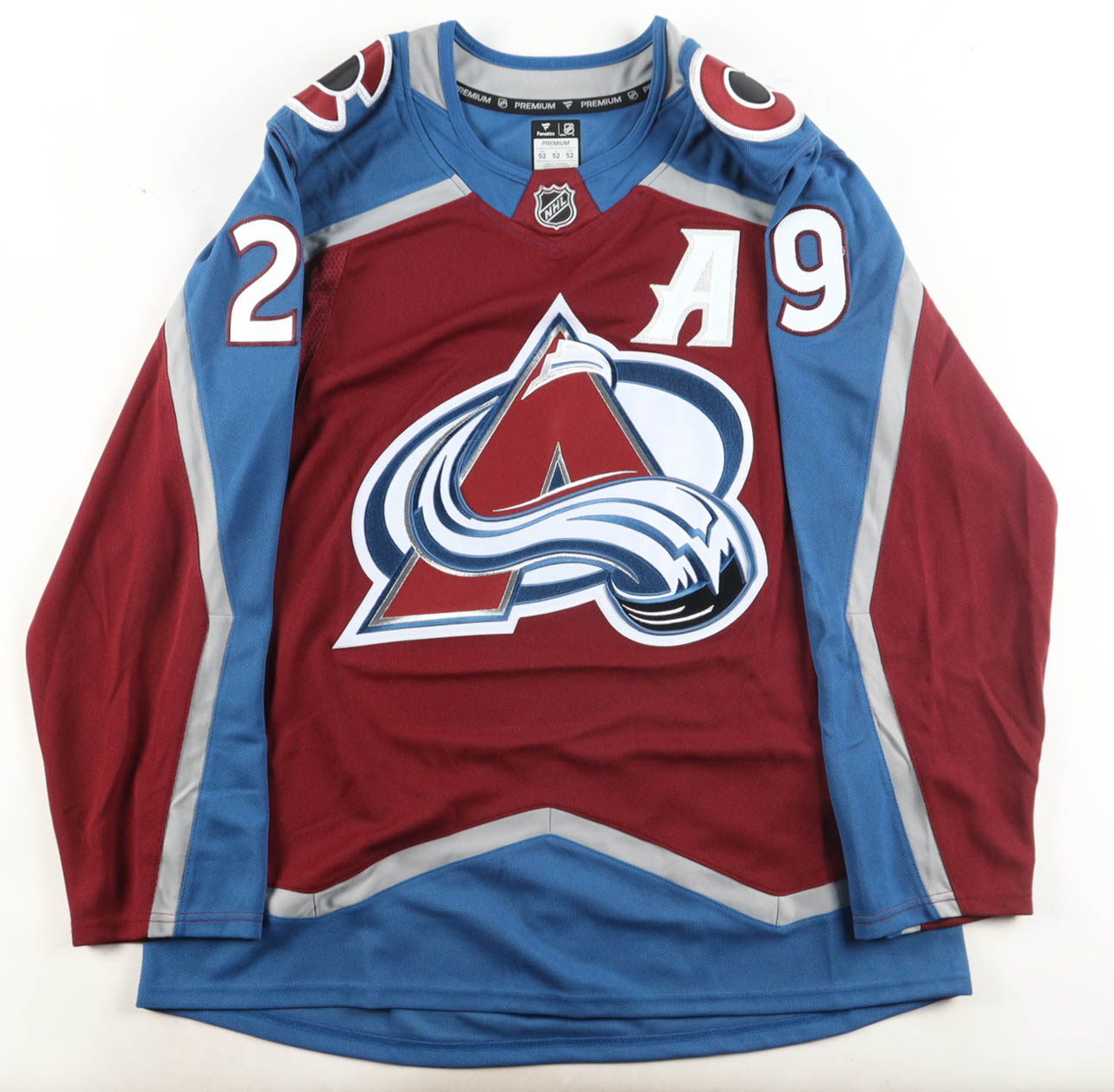 Fanatics authentic jersey with everything sewn on, size 52. Hand-signed by Nathan MacKinnon (Colorado Avalanche).