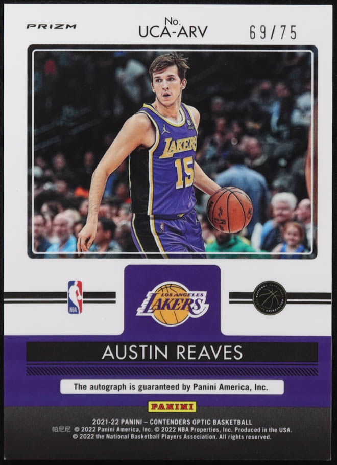 Austin Reaves 2021-22 Panini Contenders Optic Up And Coming Auto #UCA-ARV RC #69/75