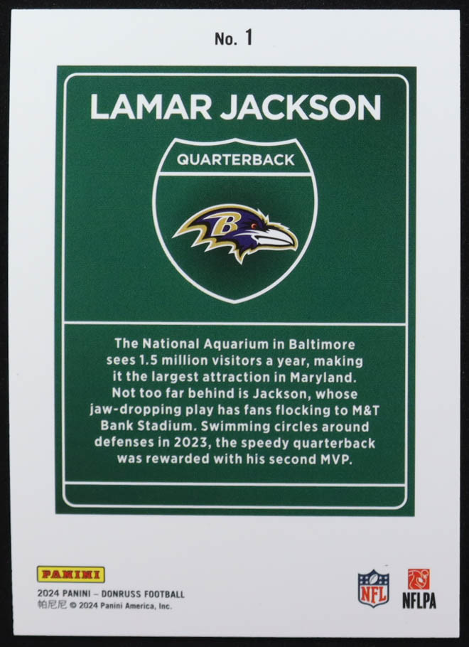 Lamar Jackson 2024 Panini Donruss Downtown #1 Jumbo