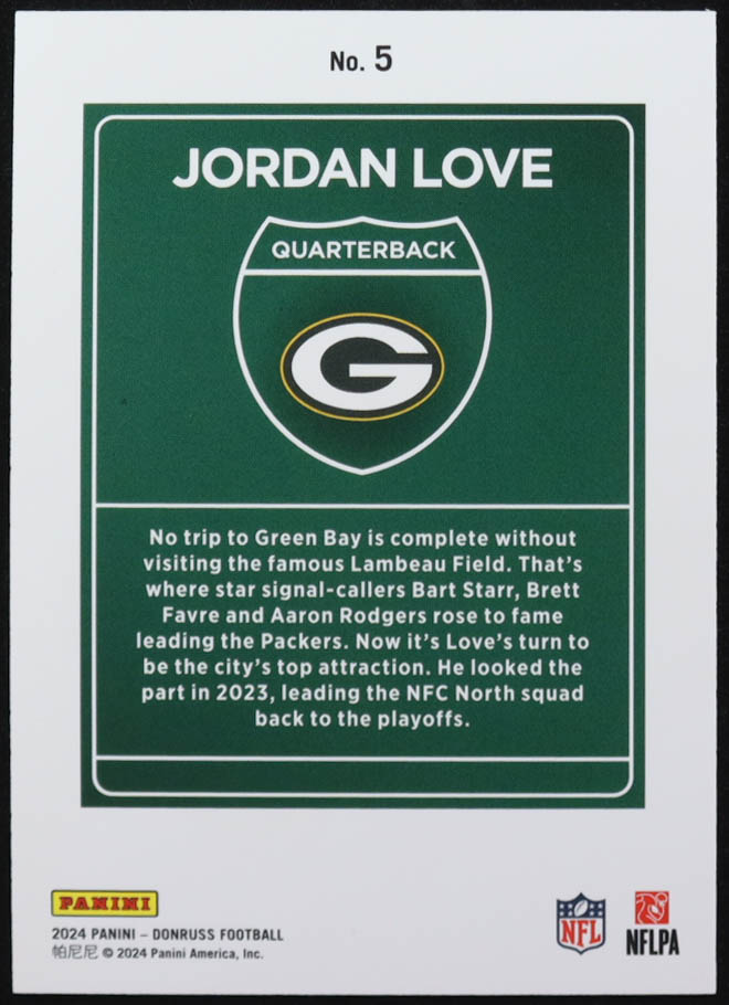 Jordan Love 2024 Panini Donruss Downtown #5 Jumbo