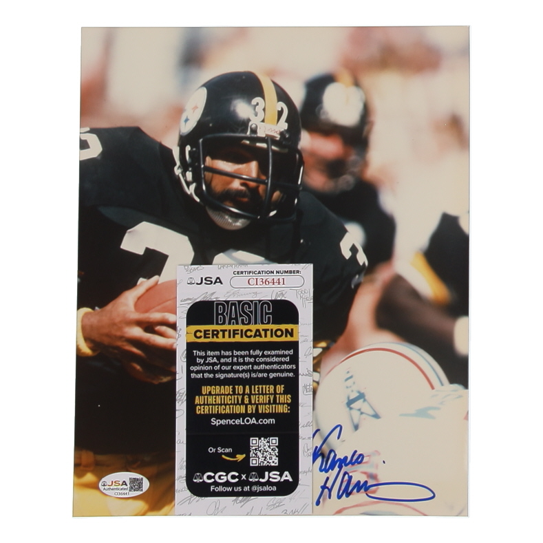 Photo measures 8" x 10" in size and has been hand-signed by Franco Harris (D. 2022, Pittsburgh Steelers, HOF).