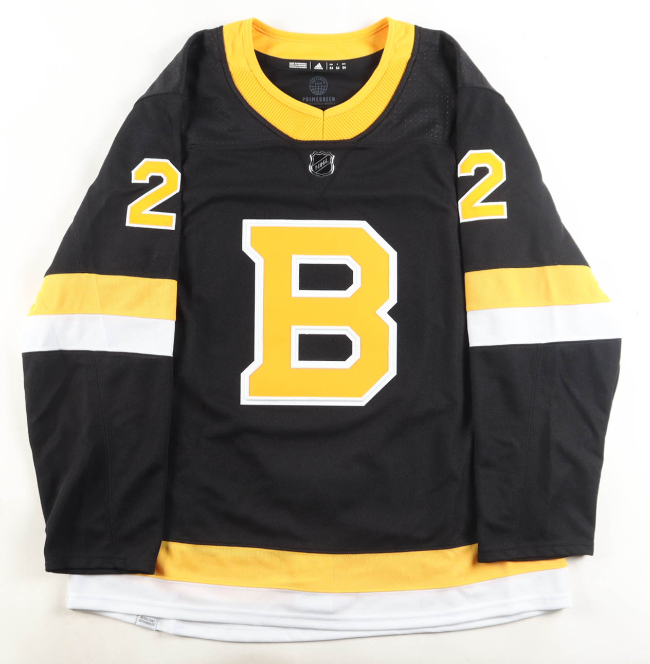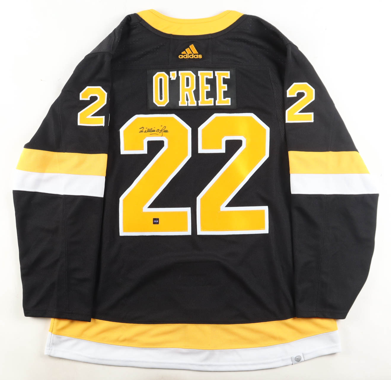 Adidas jersey. Everything is sewn on, size 54. Has been hand-signed by Willie O'Ree (Boston Bruins, HOF).