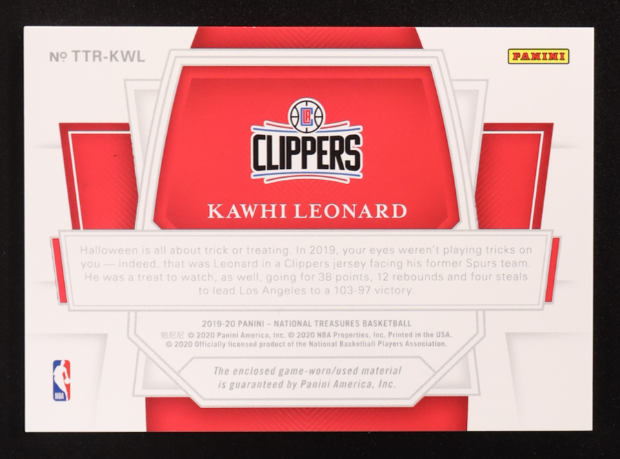 Kawhi Leonard 2019-20 Panini National Treasures Tremendous Treasures Relics #19 #42/49