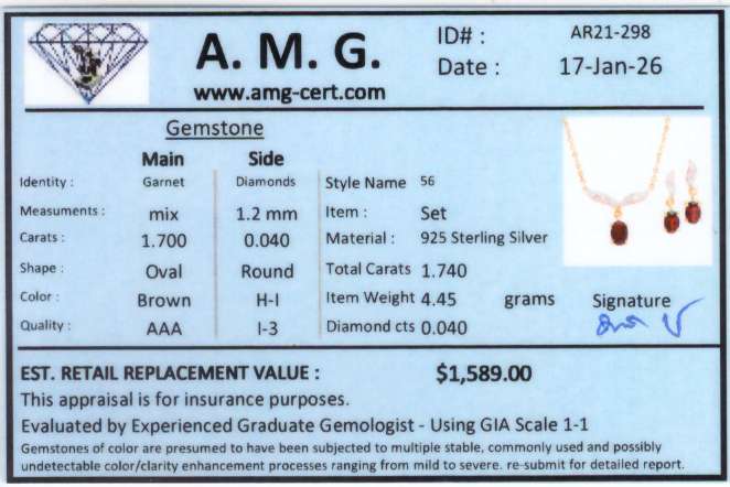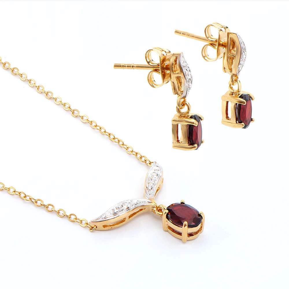 1.74 CTW Natural Garnets & Diamonds 18K Gold Plated Designer Necklace & Earrings Set | Estimated Value $1,589 (AMG)