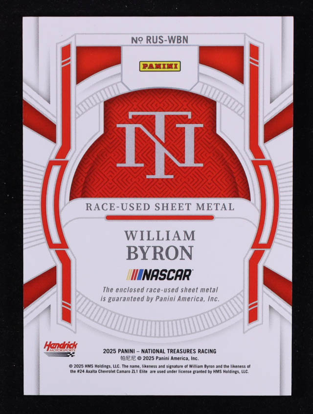William Byron 2025 Panini National Treasures Race Used Sheet Metal #5 #17/99