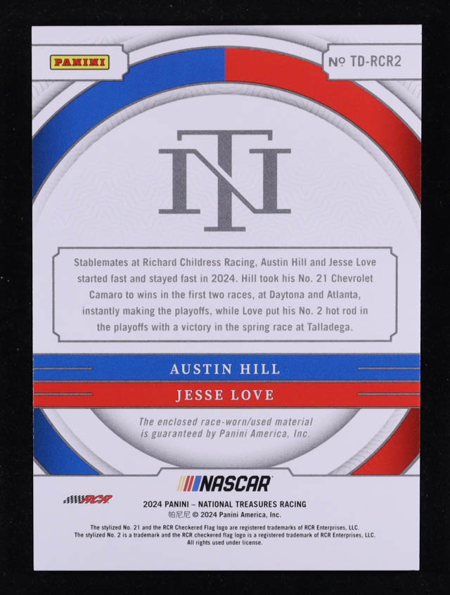 Austin Hill / Jesse Love 2024 Panini National Treasures Team Dual Memorabilia Holo Gold #14 #08/10