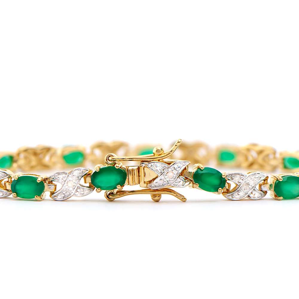 4.96 CTW Natural Green Agate & Diamond 18K Gold Plated Designer Bracelet Size 7.6 Inches (10.15 grams)