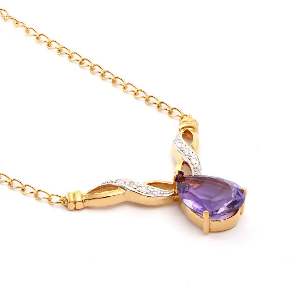 4.21 CTW Amethyst & Diamond 18K Gold Plated Designer Necklace Size 19 Inches (6.32 grams) Contains:
