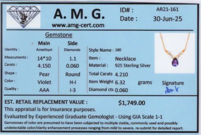 The item includes certification from AMG.