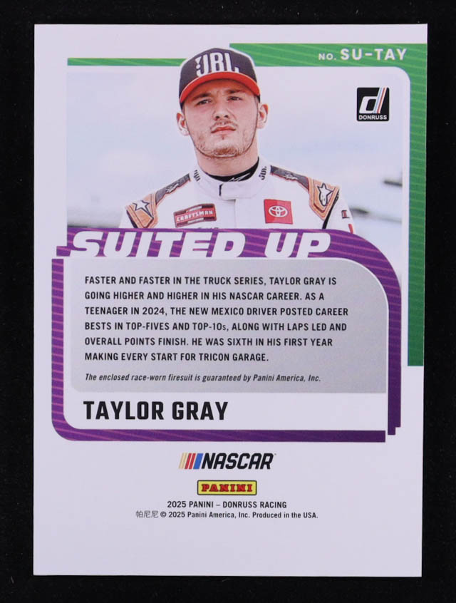 Taylor Gray 2025 Donruss Suited Up Swatches Gold #10 #01/10