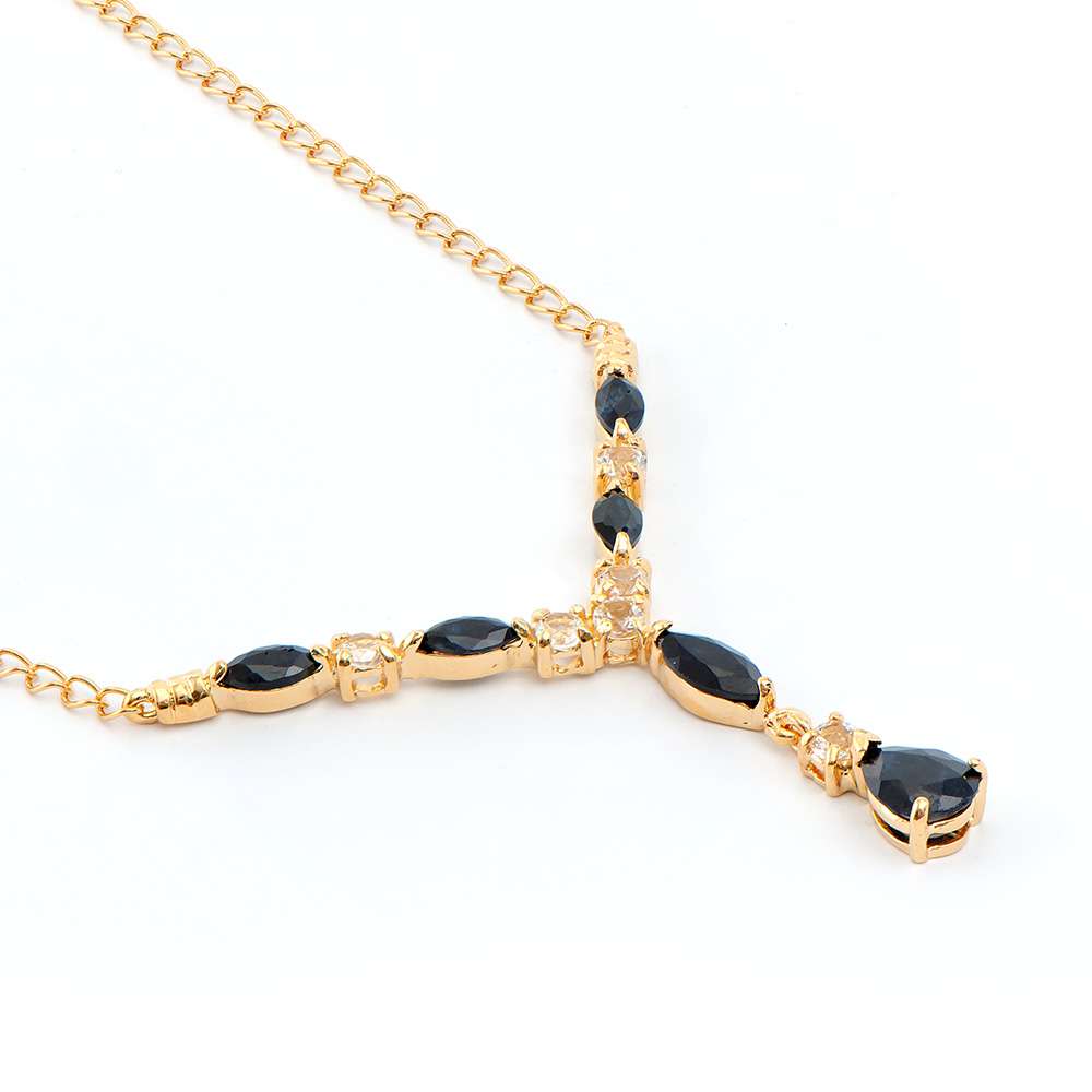 4.14 CTW Natural Black Sapphire & White Topaz 18K Gold Plated Designer Necklace Size 19 Inches (6.05 grams)