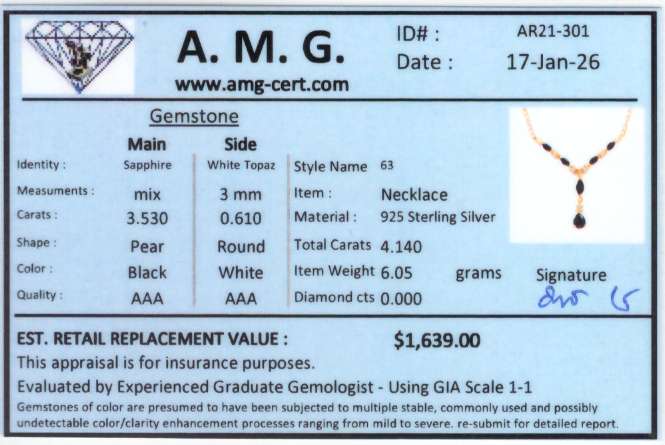 4.14 CTW Natural Black Sapphire & White Topaz 18K Gold Plated Designer Necklace Size 19 Inches | Estimated Value $1639 (AMG)