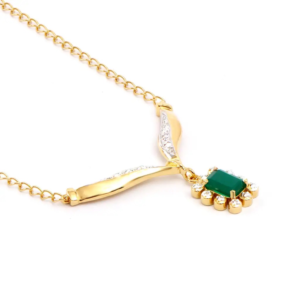 0.94 CTW Natural Green Agate & Diamonds 18K Gold Plated Designer Necklace Size 19 Inches (5.55 grams)