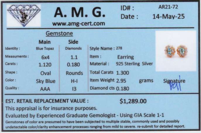 1.3 CTW Natural Blue Topaz & Diamonds 18K Gold Plated Designer Earrings | Estimated Retail Value: $1,289 (AMG)