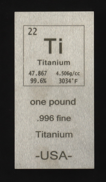 One Pound .999 Fine Titanium "Periodic Table" Bullion Bar
