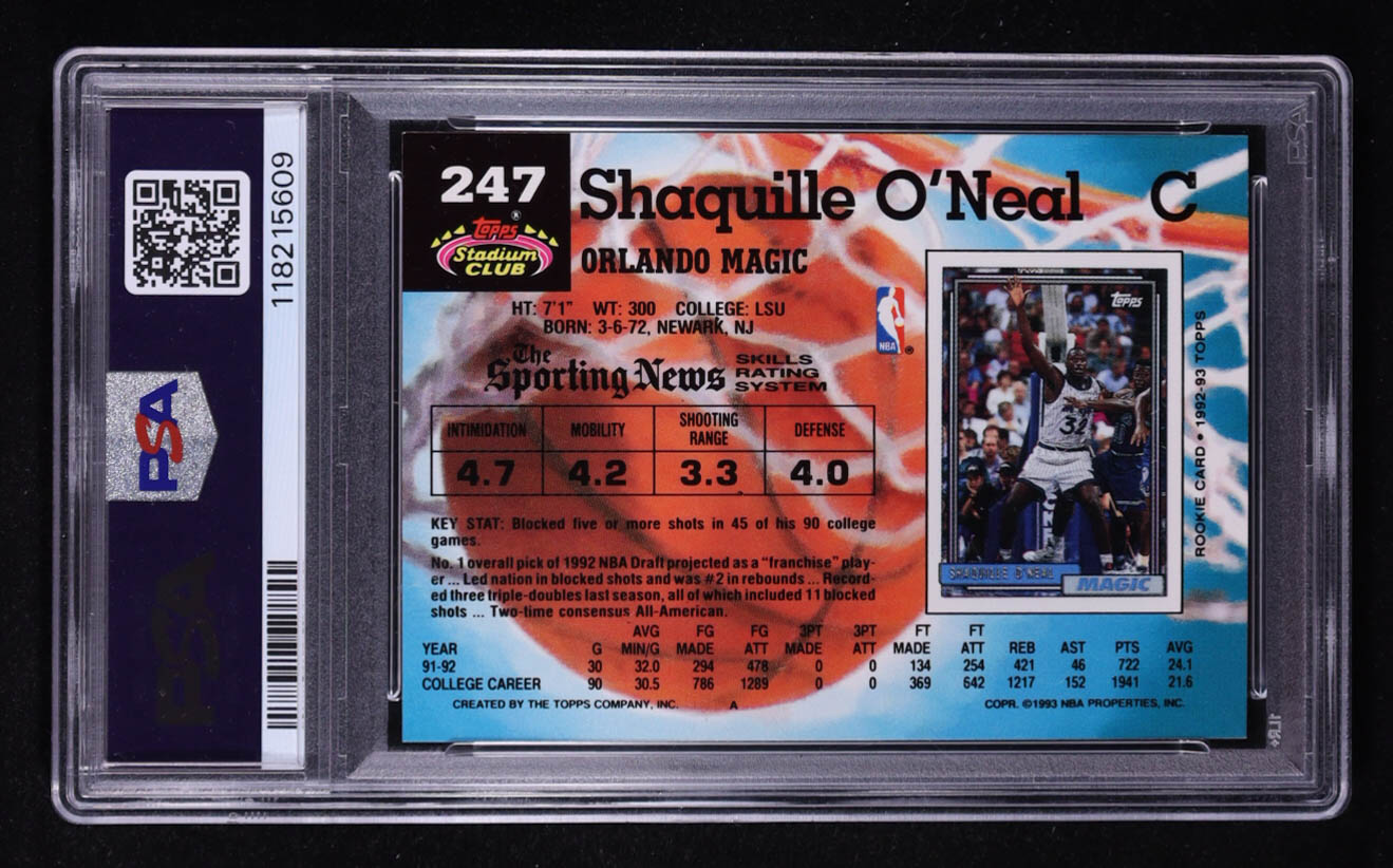 Shaquille O'Neal 1992-93 Stadium Club #247 RC (PSA 7)
