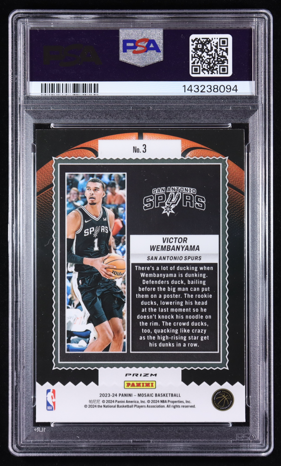 Victor Wembanyama 2023-24 Panini Mosaic Jam Masters Mosaic Green #3 RC (PSA 10)