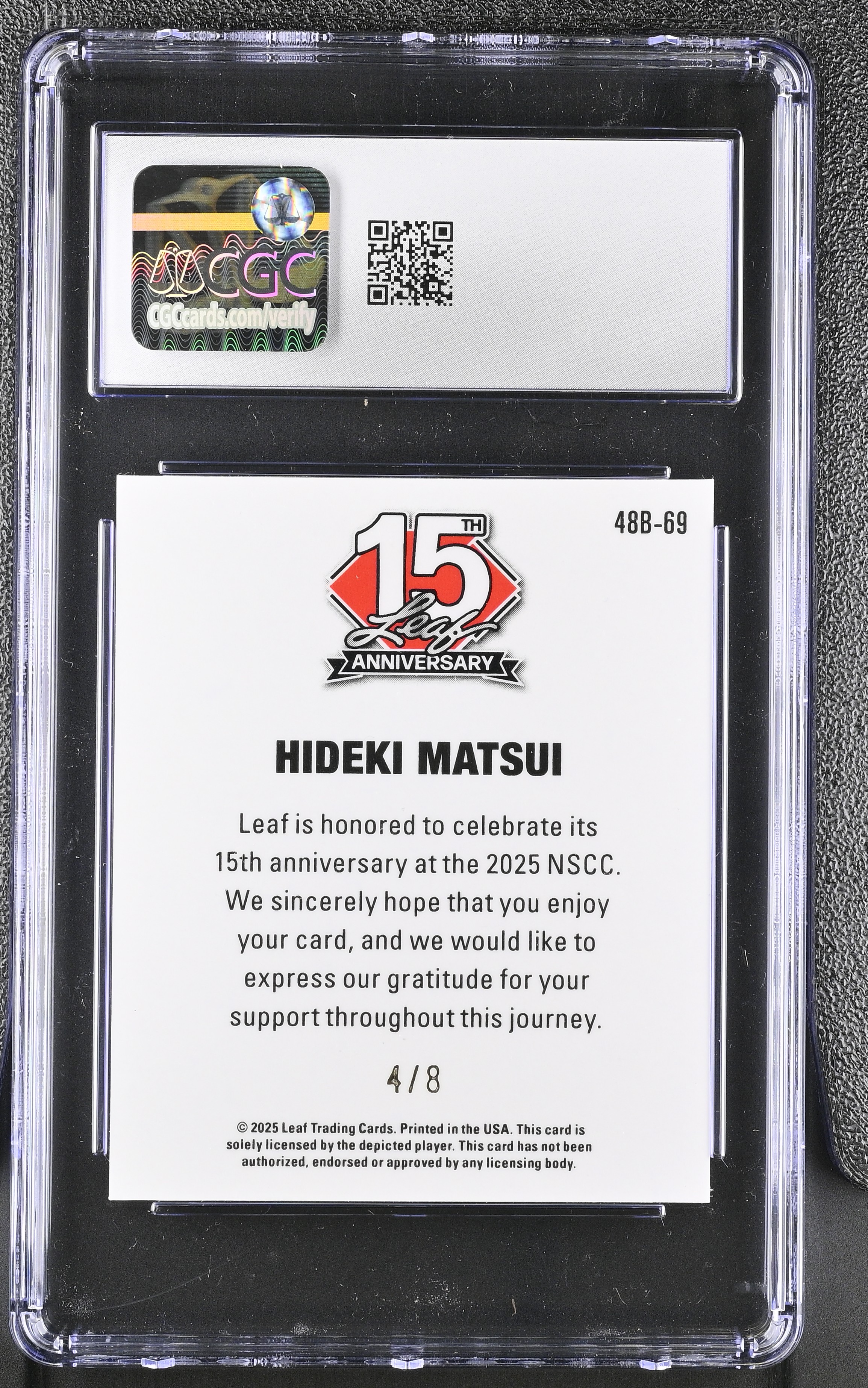 Hideki Matsui 2025 Leaf 15th Anniversary '48 Leaf Lazer Pink #48B69 #4/8 (CGC 10)