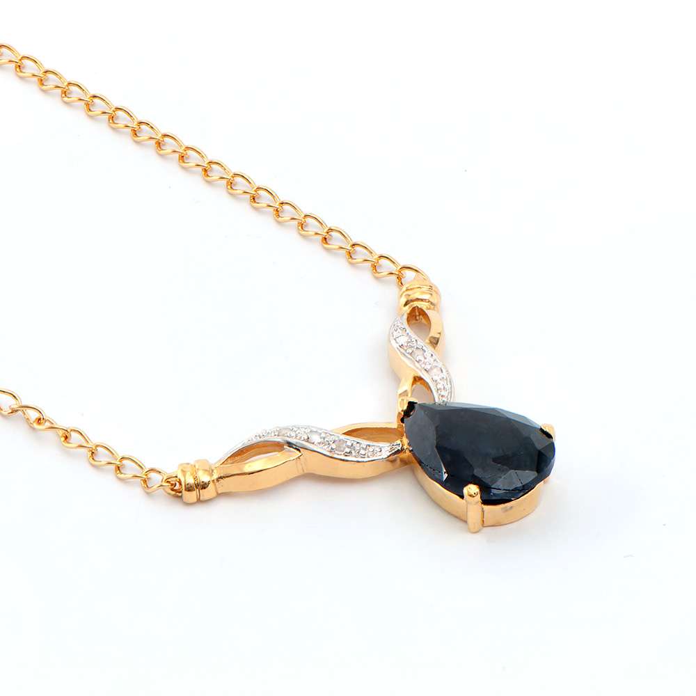 5.61 CTW Natural Sapphire & Diamond 18K Gold Plated Designer Necklace Size 19 Inches (6.53 grams)