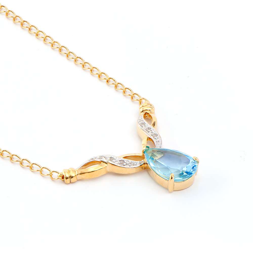 5.51 CTW Natural Blue Topaz & Diamond 18K Gold Plated Designer Necklace Size 19 Inches (6.53 grams)