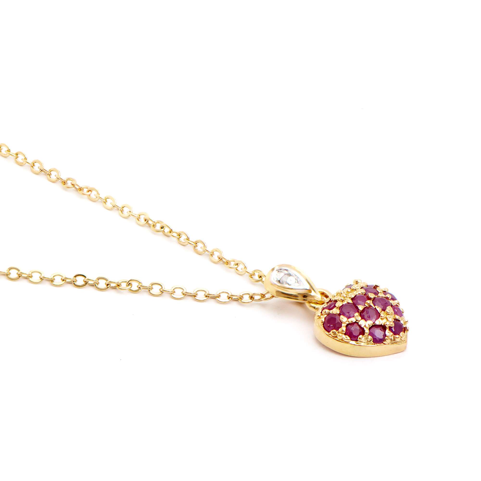 0.71 CTW Natural Ruby & Diamonds 18K Gold Plated Designer Pendant 18 Inches (2.55 grams)