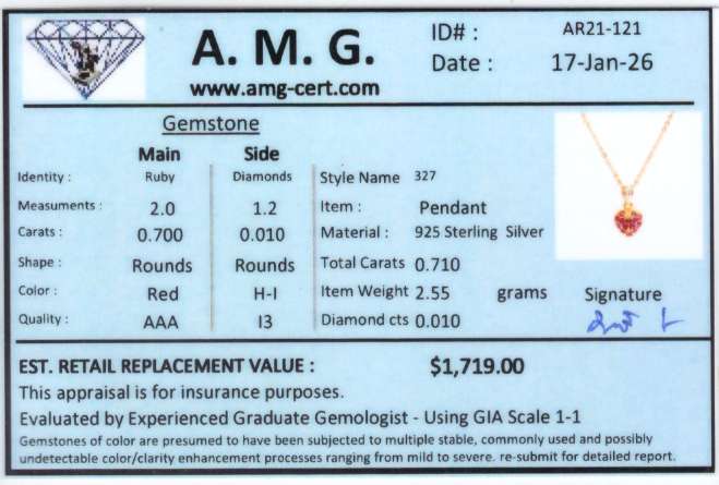 0.71 CTW Natural Ruby & Diamonds 18K Gold Plated Designer Pendant 18 Inches | Estimated Value $1,719 (AMG)