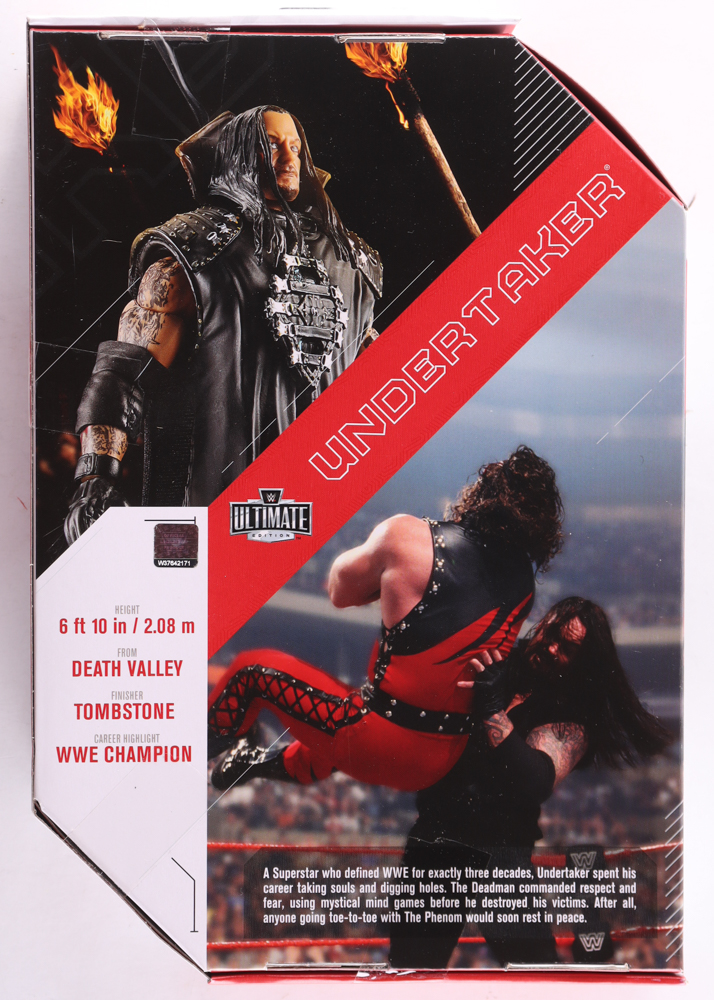 WWE Ultimate Edition action figure measures approximately 8" in height. The packaging has been hand-signed by Undertaker (HOF). See photos for more details.