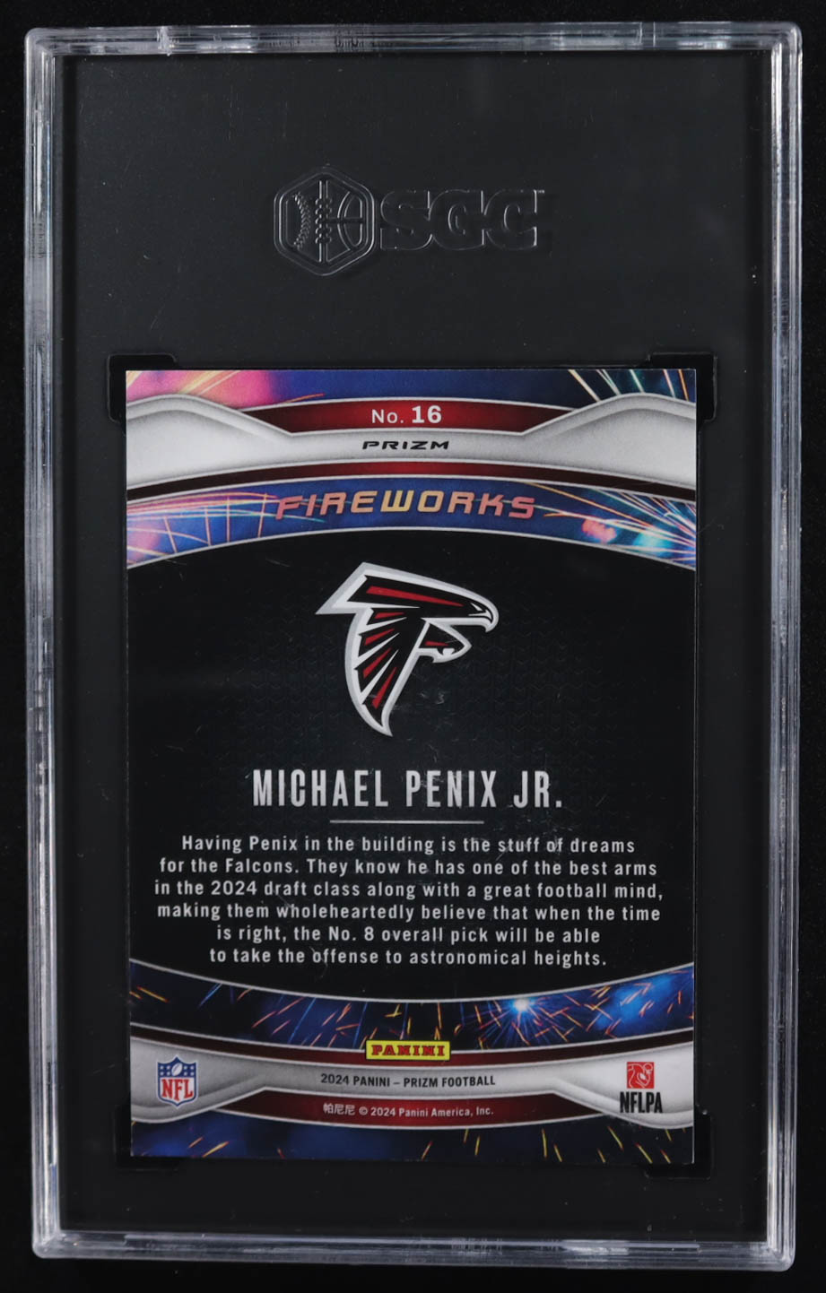 Michael Penix Jr. 2024 Panini Prizm Fireworks Prizms Green #16 RC (SGC 10)
