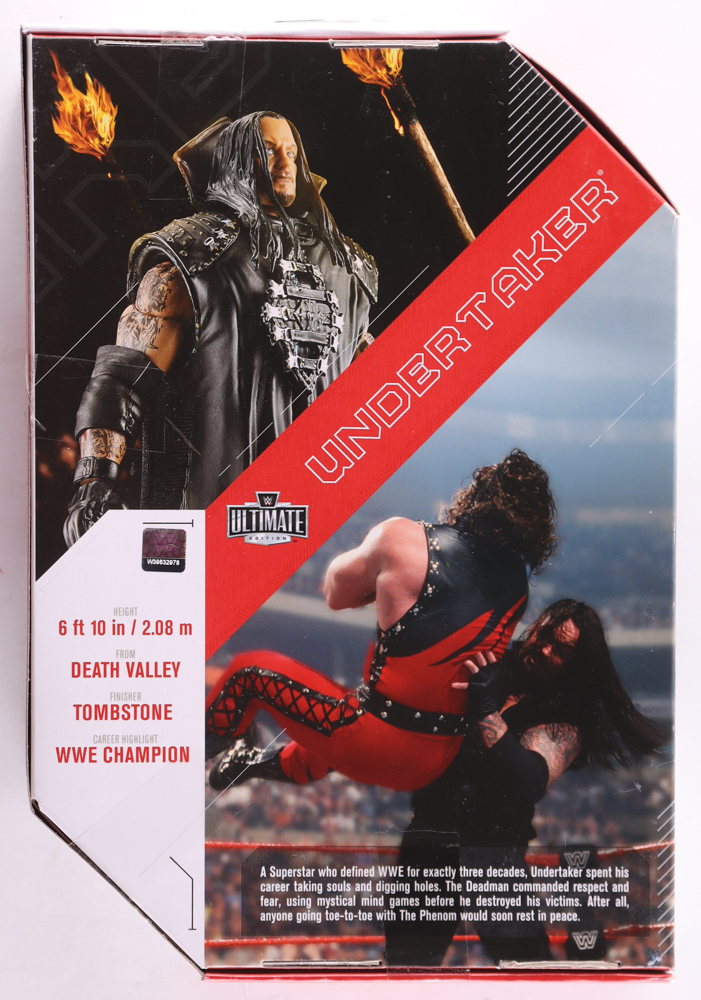 WWE Ultimate Edition action figure measures approximately 8" in height. The packaging has been hand-signed by Undertaker (HOF). See photos for more details.